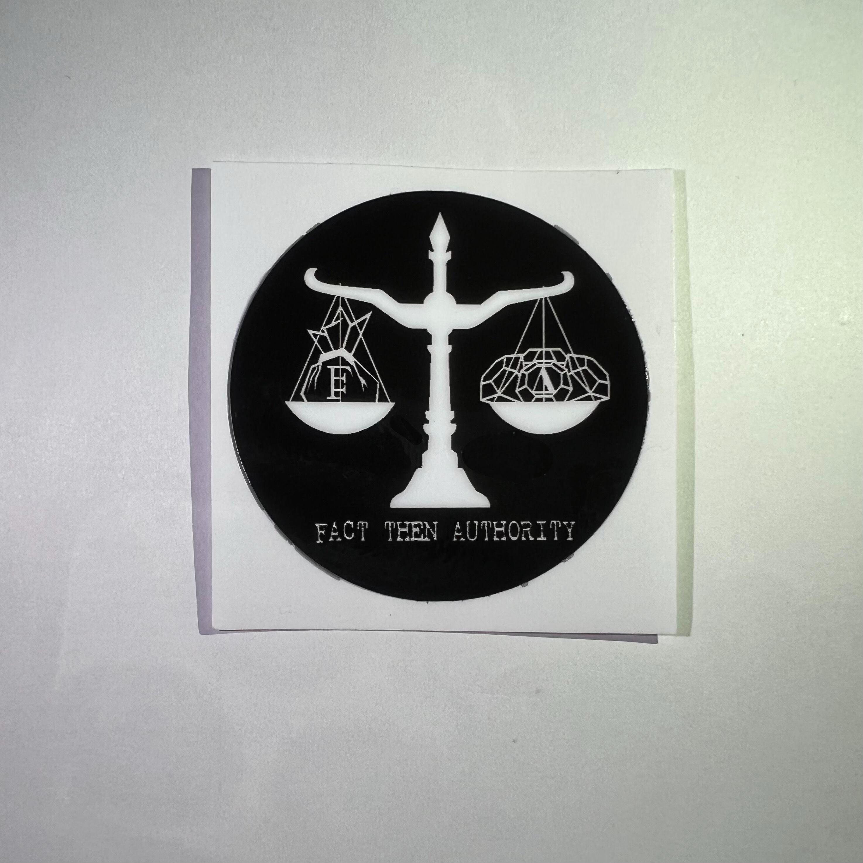 FACT THEN AUTHORITYのロゴをプリントしたステッカーです。